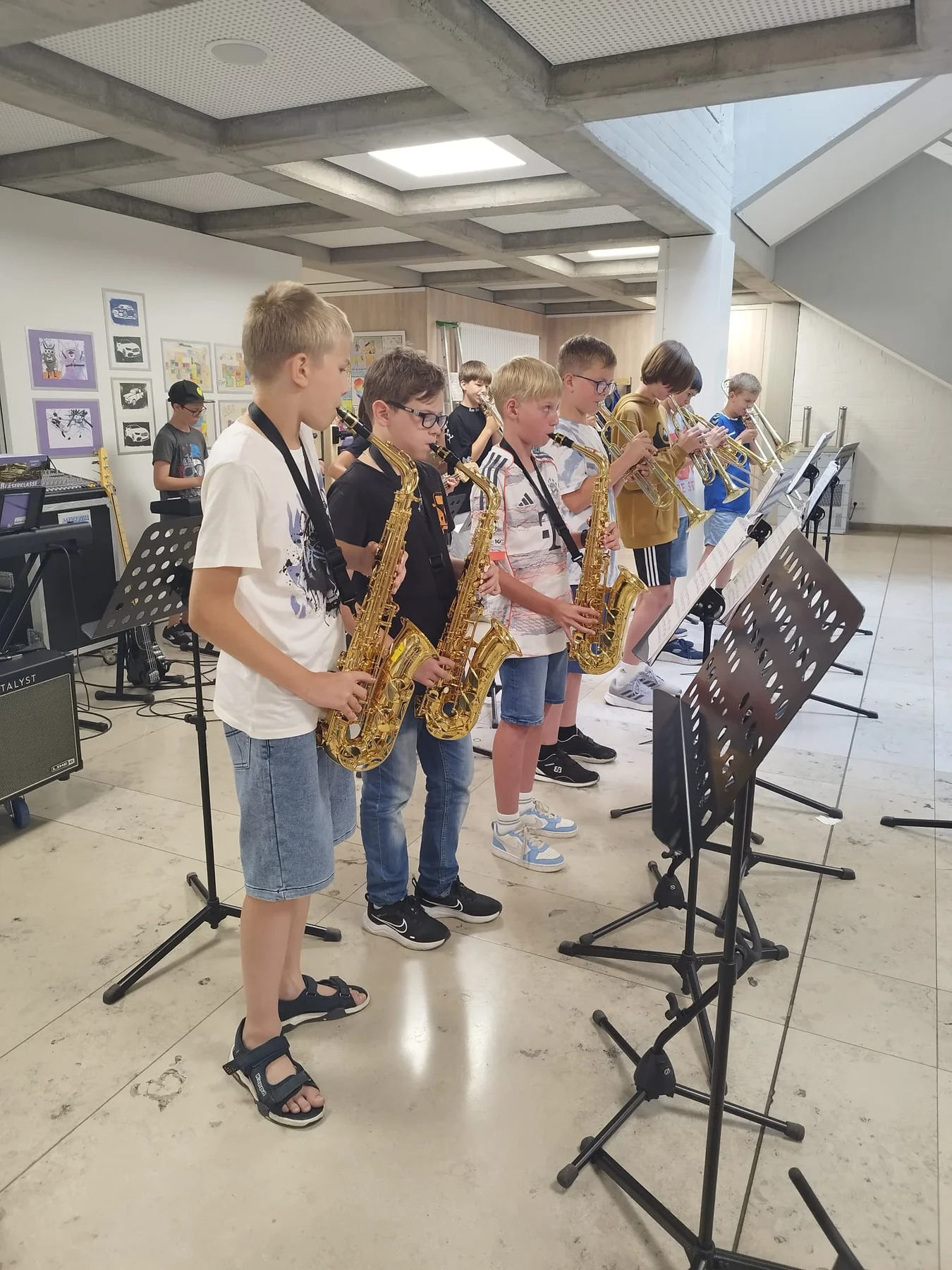 In unserer BigBand-Klasse lernen Schülerinnen und Schüler der 5. und 6. Jahrgangsstufe ein Blas- oder Bandinstrument und musizieren von Anfang an gemeinsam als echte Big Band.